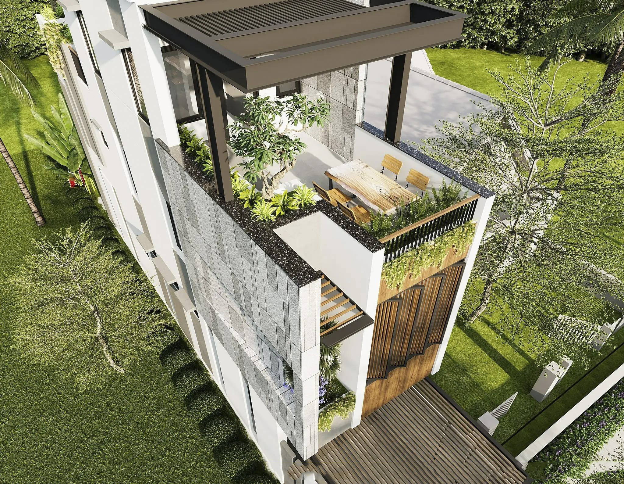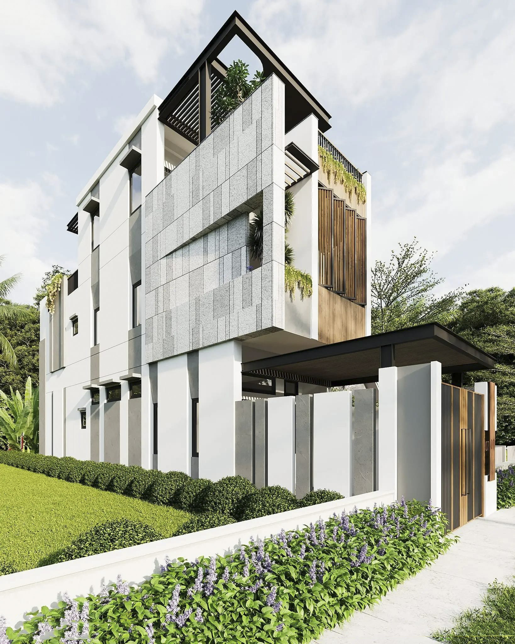 KIẾN TRÚC NHÀ PHỐ MÁI BẰNG 2 TẦNG 1 TUM